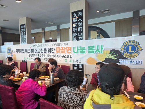 광양시 광양 가야라이온스클럽(회장 김민정)이 지난 11월 13일 중마동 북경반점에서 ‘사랑의 짜장면 나눔 행...