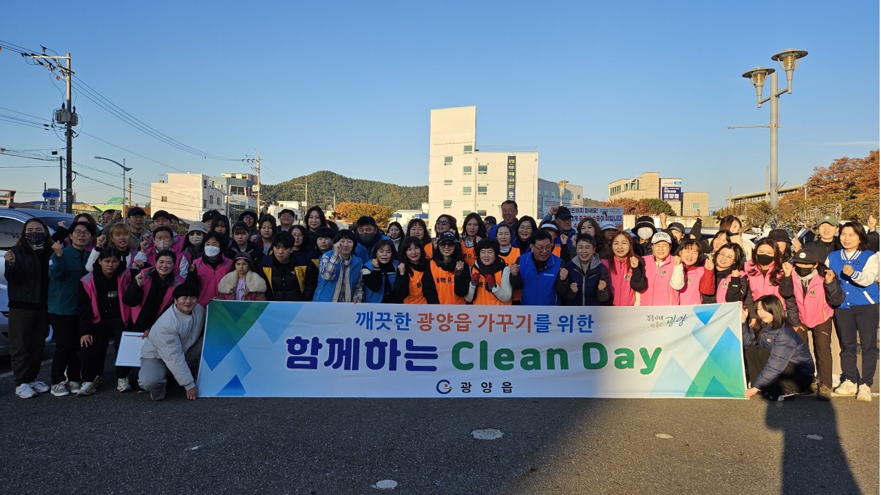 ‘클린데이’는 광양읍 사회·봉사단체와 읍사무소 직원이 함께 거리 대청소를 진행하는 행사로, 매월 셋째 주 토요일 정기적으로 운영되고 있다.
