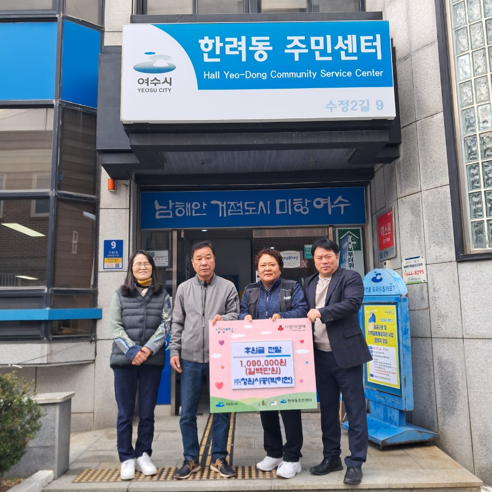 여수시 한려동(동장 최유기)은 청원시공(대표 박하현)이 지난 19일 지역발전과 관내 도움이 필요한 취약계층의 복지향상을 위해 100만 원을 기탁했다고 밝혔다.