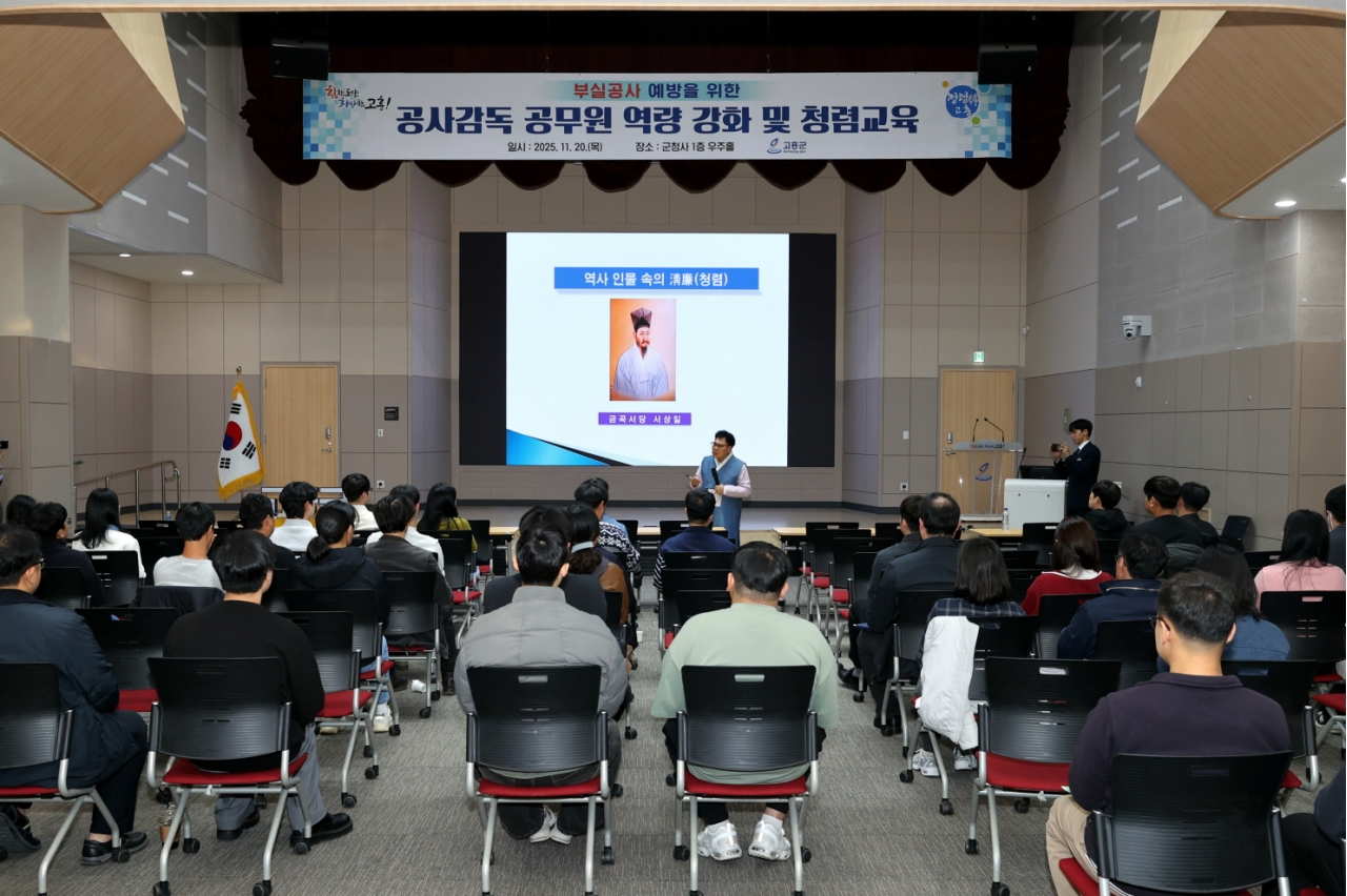 고흥군(군수 공영민)은 지난 20일 고흥군청 우주홀에서 공사감독 공무원 100명을 대상으로 부실시공 예방과 청렴의식 제고를 위한 ‘공사감독 공무원 역량강화 및 청렴교육’을 실시했다고 밝혔다.