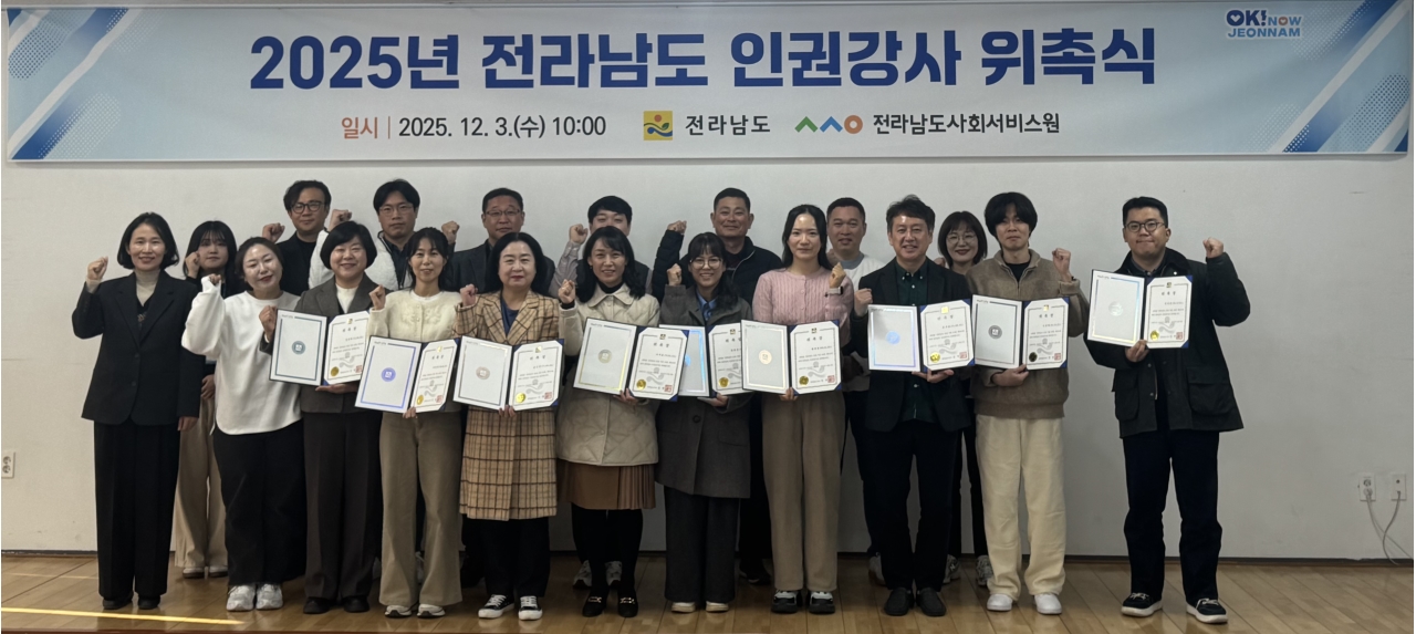 전라남도는 3일 도민 인권교육을 통해 생활 속 인권 존중문화 확산에 앞장설 신규 인권강사 15명을 위촉했다.