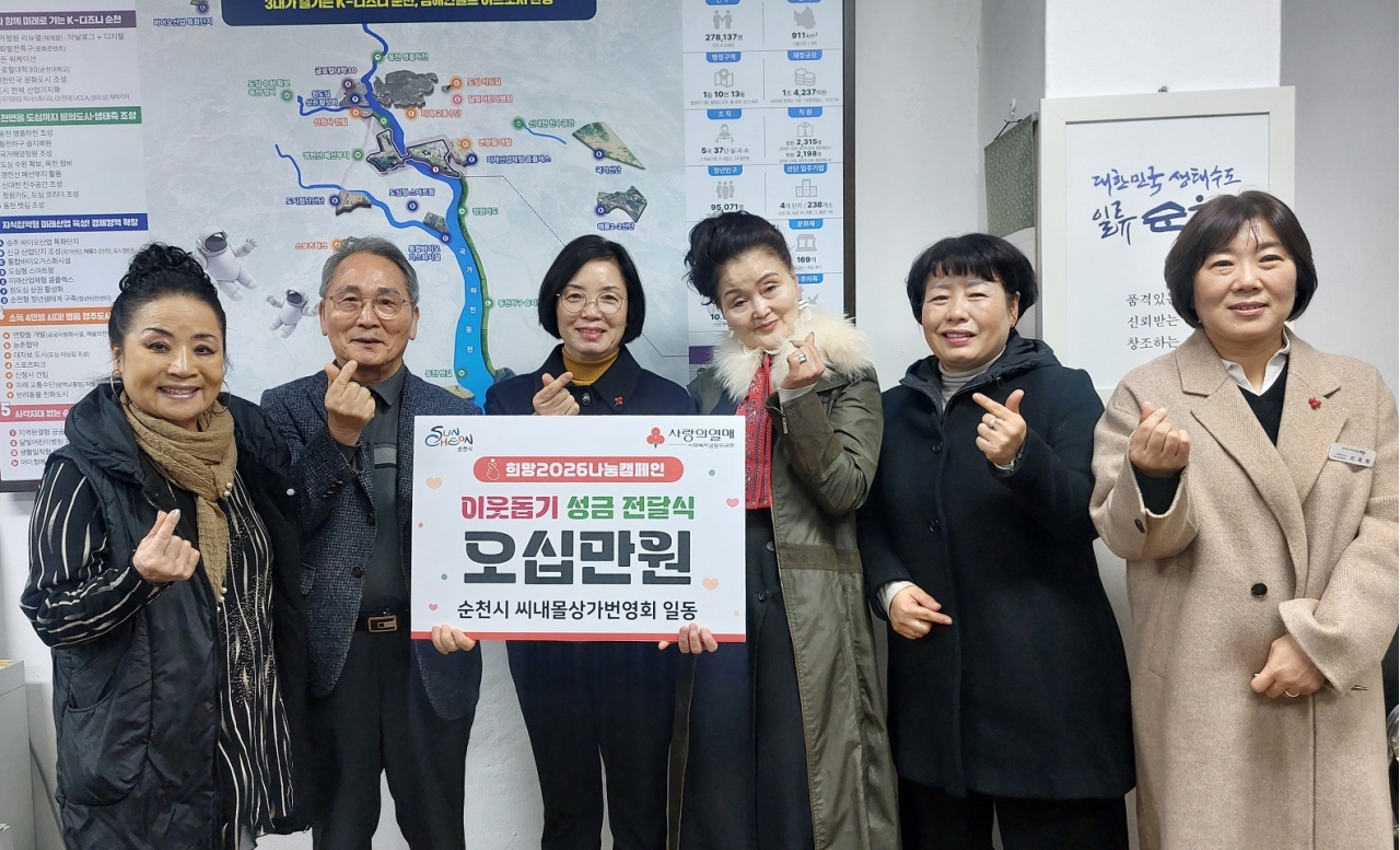 한편 희망2026나눔캠페인은 “행복을 더하는 기부, 기부로 바꾸는 순천”이라는 슬로건으로 2025년 12월 1일부터 2026년 1월 31일까지 62일간 진행되며, 참여를 원하는 시민은 행정복지센터나 사회복지과(061-749-6285)로 문의하면 된다.