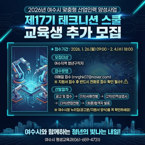 여수시 여수시가 지역 산업 수요에 맞는 전문 인력을 양성하기 위해 추진하는 ‘2026년 여수시 맞춤형 산업인...