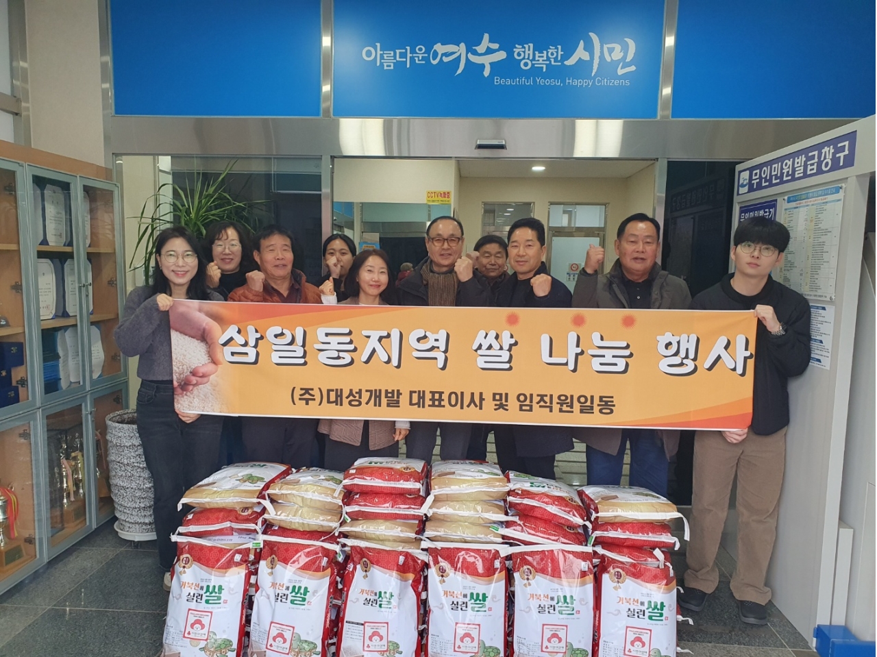 기부된 쌀은 대성개발 측의 뜻에 따라 삼일동 저소득가구와 어르신들이 이용하는 경로당 등에 전달될 예정이다.