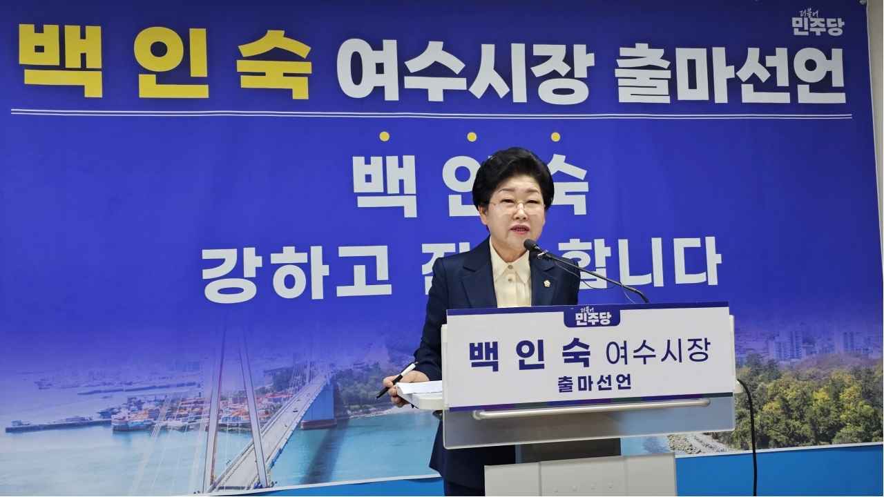 백인숙 여수시의회 의장이 첫 여성시장 도전을 공식 선언하며 산업과 민생 위기 극복을 위한 ‘시정 대전환 비전’을 제시했다.