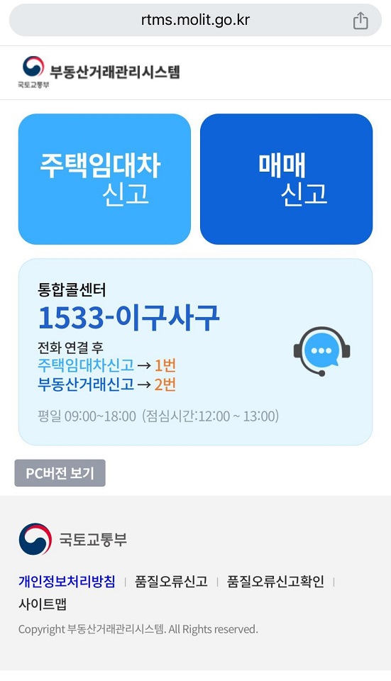 스마트폰‧태블릿 등 모바일로 부동산거래관리시스템 누리집(https://rtms.molit.go.kr)에 접속해 카카오톡 등 간편 인증 방식으로 본인임을 인증하고 주택 임대차 계약 신고를 할 수 있다. 정정‧변경‧해제 신고는 물론 카카오톡 채널을 추가하면 신고 관련 문의 상담도 가능하다.