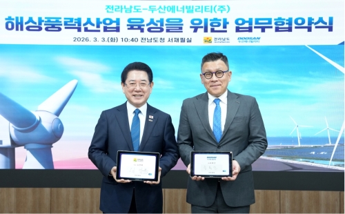 전라남도 전라남도는 3일 도청 서재필실에서 국내 대표 에너지기업인 두산에너빌리티와 ‘해상풍력 산업 육성을 위...