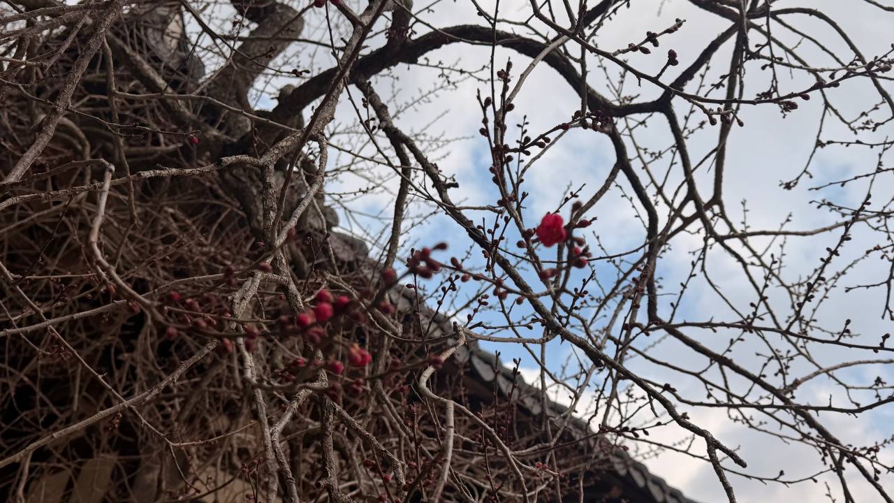 대한불교조계종 제19교구 본사 지리산대화엄사(주지 우석 스님)는 국가유산 천연기념물 '구례 화엄사 화엄매' 홍매화가 2026년 3월 6일 오후 2시 무렵 첫 꽃망울을 터뜨리며 본격적인 개화를 시작했다고 밝혔다.
