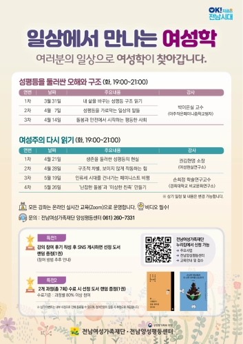전라남도 전남여성가족재단이 도민과 함께하는 여성학 전문강좌 ‘2026 일상에서 만나는 여성학’ 참여자를 모집...