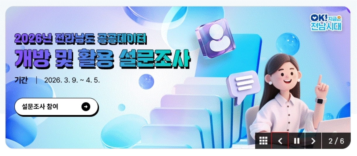 전라남도가 도민이 체감하고 민간 영역에서 실질적으로 활용할 고가치 공공데이터를 발굴하기 위해 오는 4월 5일까지 4주간 ‘공공데이터 개방 및 활용을 위한 대국민 설문조사’에 나선다.