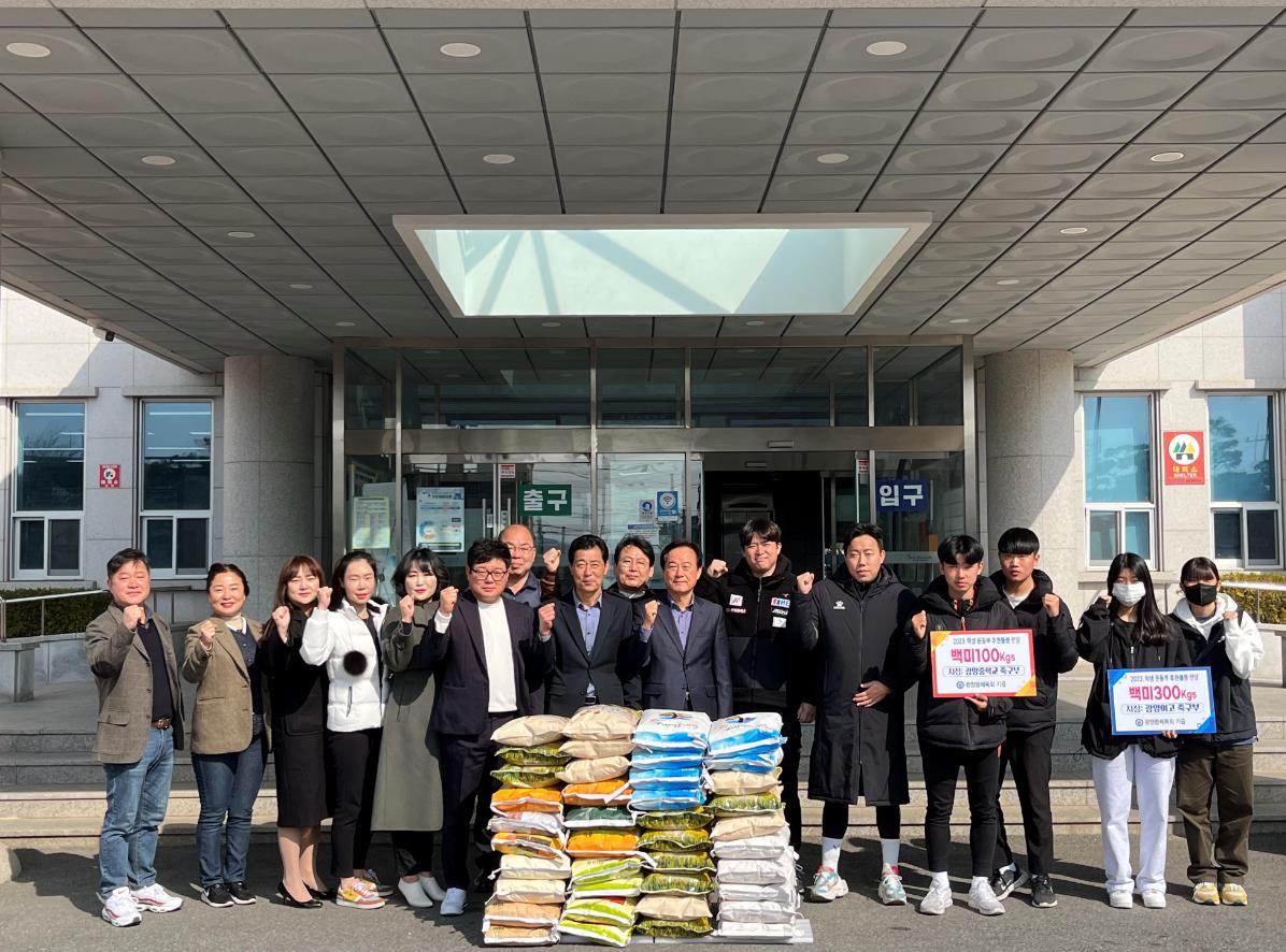 광양읍 체육회는 24일 읍사무소에서 민선2기 취임식에 축하 화환 대신 기증받은 쌀 48포대(500kg)를 광양여고와 광양중 축구부에게 기증했다.