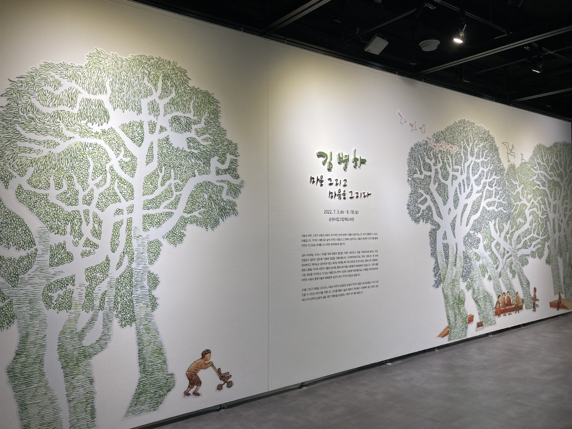 순천시립그림책도서관은 7월 5일부터 제24회 그림책 원화전시 김병하 그림책전 ‘마을 그리고 마음을 그리다’를 운영한다.