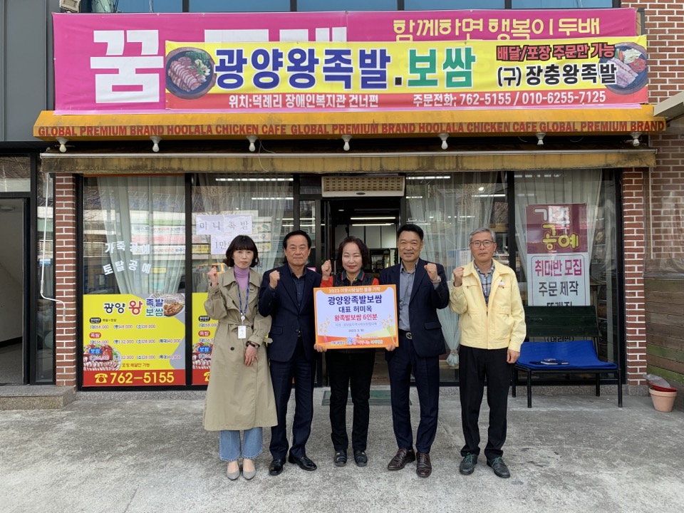 허미옥 광양왕족발보쌈 대표는 “어려운 취약계층에게 따뜻한 이웃의 정을 제공할 수 있어 기쁘다”며 “어려운 취약계층을 위해 어떤 일을 할 수 있을지 항상 고심하고 노력하겠다”고 전했다.