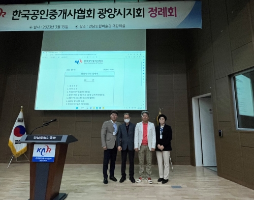광양시 광양시는 15일 한국공인중개사협회 광양시지회 1분기 정례회에 참석한 개업·소속공인중개사에게 신분증을 ...