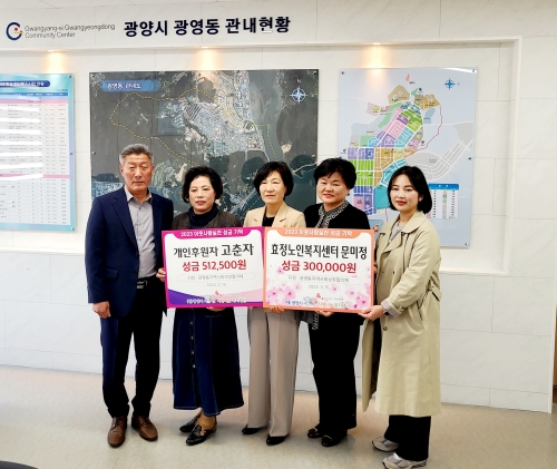 광양시 광영동 고춘자님과 문미정님(효정노인복지센터 센터장)은 15일(수) 광영동 주민센터에서 이웃사랑 실천을...