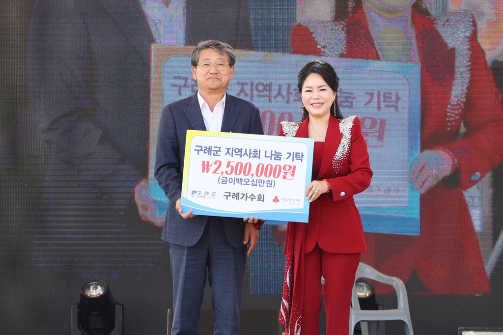 김순호 군수는 “구례가수회의 나눔 실천에 깊은 감사를 드리며, 따뜻한 마음을 담아 주변의 도움이 필요한 어려운 이웃에게 잘 전달하여 희망을 품고 살아갈 수 있는 행복한 구례가 될 수 있도록 노력하겠다”라고 말했다.