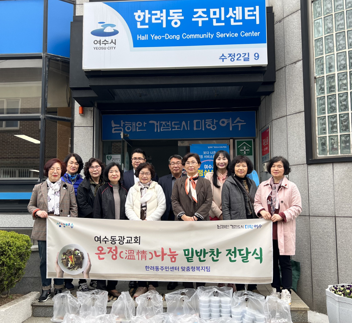 여수시 한려동 주민센터는 지난 21일 여수동광교회(담임목사 박찬일)의 후원으로 지역사회 온정나눔 밑반찬 전달식을 가졌다.