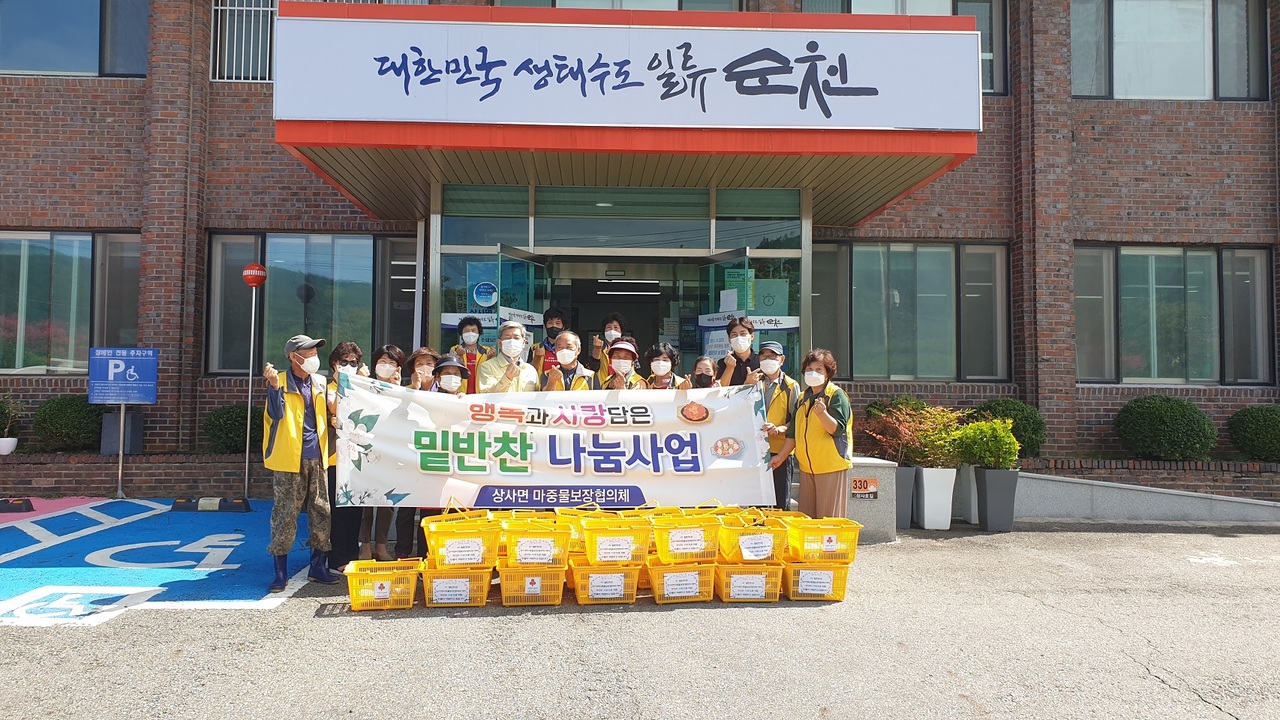상사면 마중물보장협의체는 2년 전부터 경제적 문제로 결식 우려가 있는 홀로 사는 어르신과 장애인 세대에게 전라남도 공동모금회의 지원을 받아 월 1회 밑반찬을 가정으로 배달하는 행복과 사람담은 밑반찬 나눔 사업을 진행하고 있다.