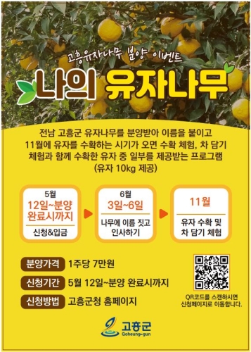 고흥군-나의 유자나무 분양 이벤트 홍보물 고흥군(군수 공영민)은 유자 주산지로서 대외적 인지도를 높이기 위해...