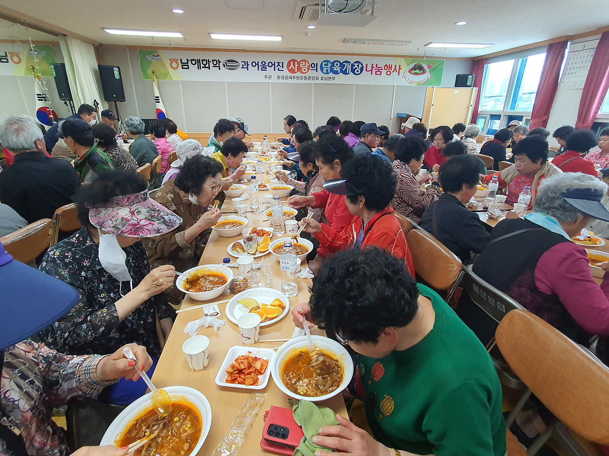 (이전에 행사가 개최된 주공아파트를 제외한) 선경아파트와 귀인아파트, 원룸, 단독주택에 거주하는 저소득층과 65세 이상 어르신 100여 명에게 따뜻한 닭 육개장과 여수시산림조합에서 제공한 빵을 대접했다.
