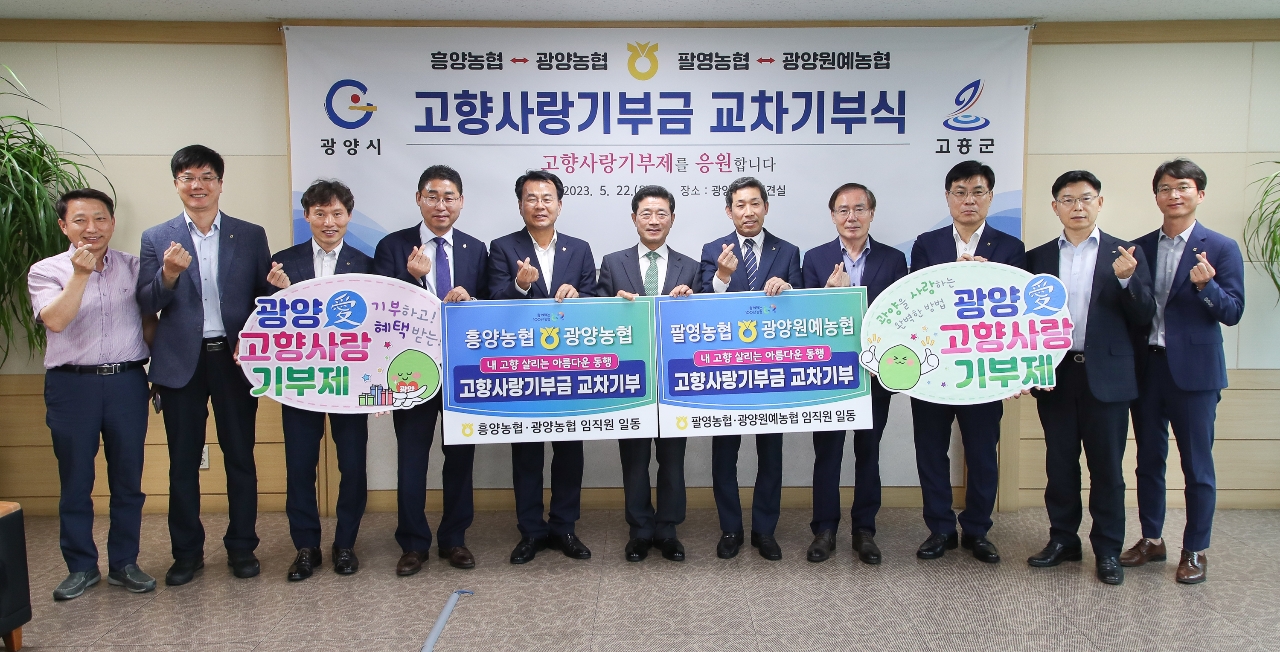 광양시는 지난 22일 광양농협과 고흥 흥양농협, 광양원예농협과 고흥 팔영농협이 고향사랑기부금 교차기부식을 개최해 내 고향 살리는 고향사랑기부에 동참했다고 밝혔다.