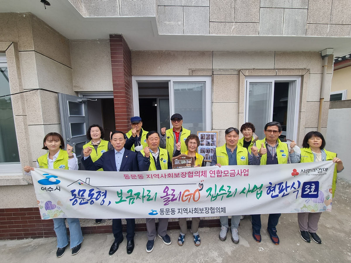 여수시 동문동 지역사회보장협의체는 지난 22일 ‘동문동형, 보금자리 올리GO’ 집수리사업 3호 준공에 따른 현판식 행사를 개최했다.