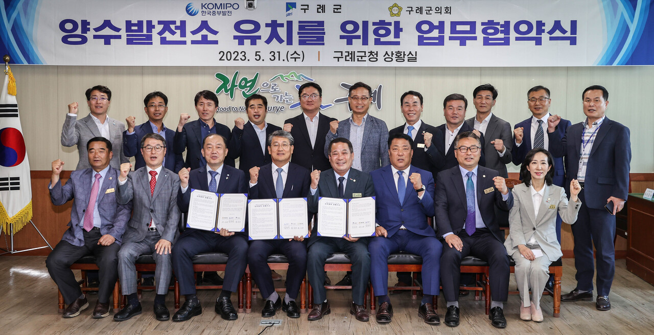 전남 구례군은 31일 군청 상황실에서 양수발전소 유치에 관한 업무협약을 체결했다고 밝혔다.