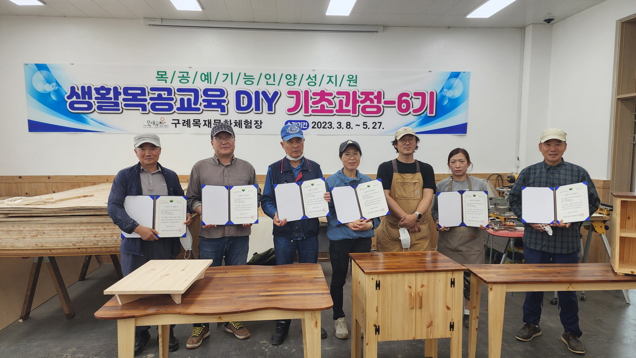 전남 구례군은 목공예 기능인 양성 교육 ‘생활목공 DIY 기초반 6기 과정’을 지난 5월 27일 성황리에 마쳤다고 밝혔다.