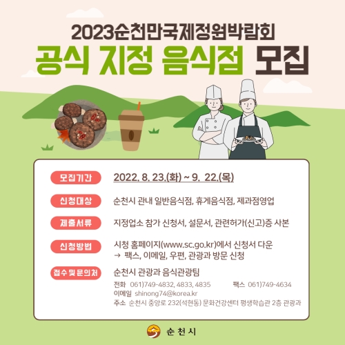 순천시- 2023순천만국제정원박람회 공식 지정 음식점 모집 포스터 순천시, 2023순천만국제정원박람회 공식 ...