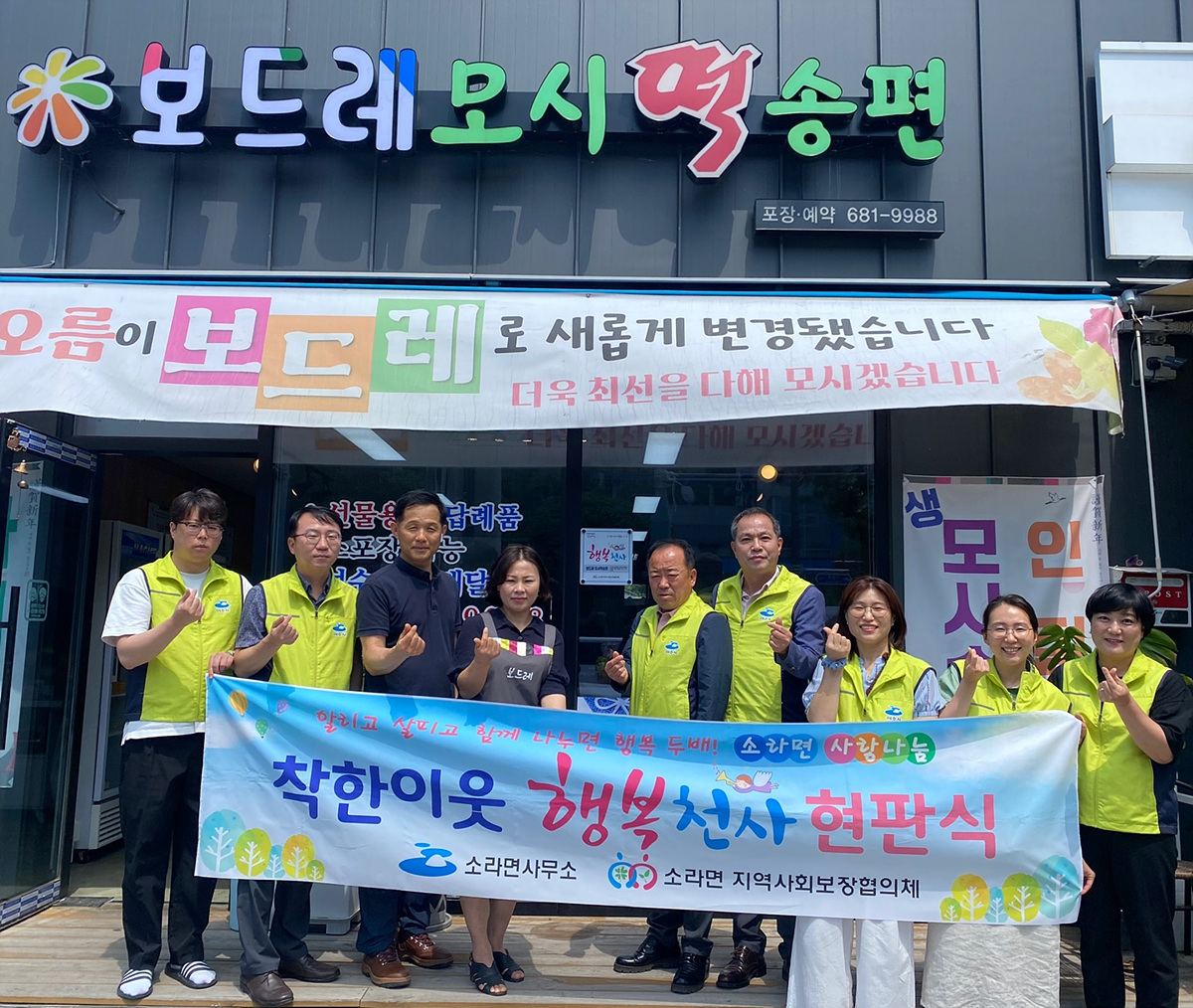 황순석 소라면장은 “경기가 좋지 않음에도 더 어려운 이웃을 위해 나눔에 동참해주신 ‘행복천사’ 업체에 진심으로 감사드린다”며 “앞으로도 민·관이 협력해 소외된 이웃 없는, 살기 좋은 소라면 만들기에 최선을 다하겠다”고 전했다.