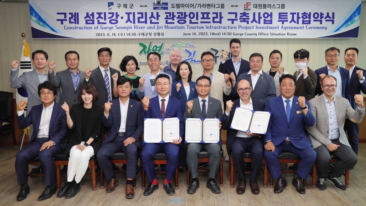 전남 구례군은 지난 6월 14일 도펠마이어/가라벤타그룹, 대원플러스그룹과 “구례 섬진강·지리산 관광인프라 구축사업 투자협약”을 체결했다고 밝혔다.