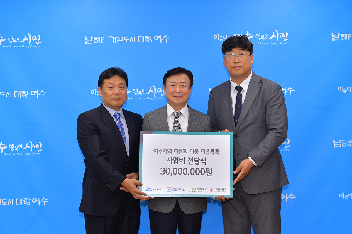 19일 시에 따르면 16일 오전 시장실에서 GS칼텍스가 ‘여수지역 다문화 아동 마음톡톡’ 사업비 3천만 원의 후원증서를 전달했다.
