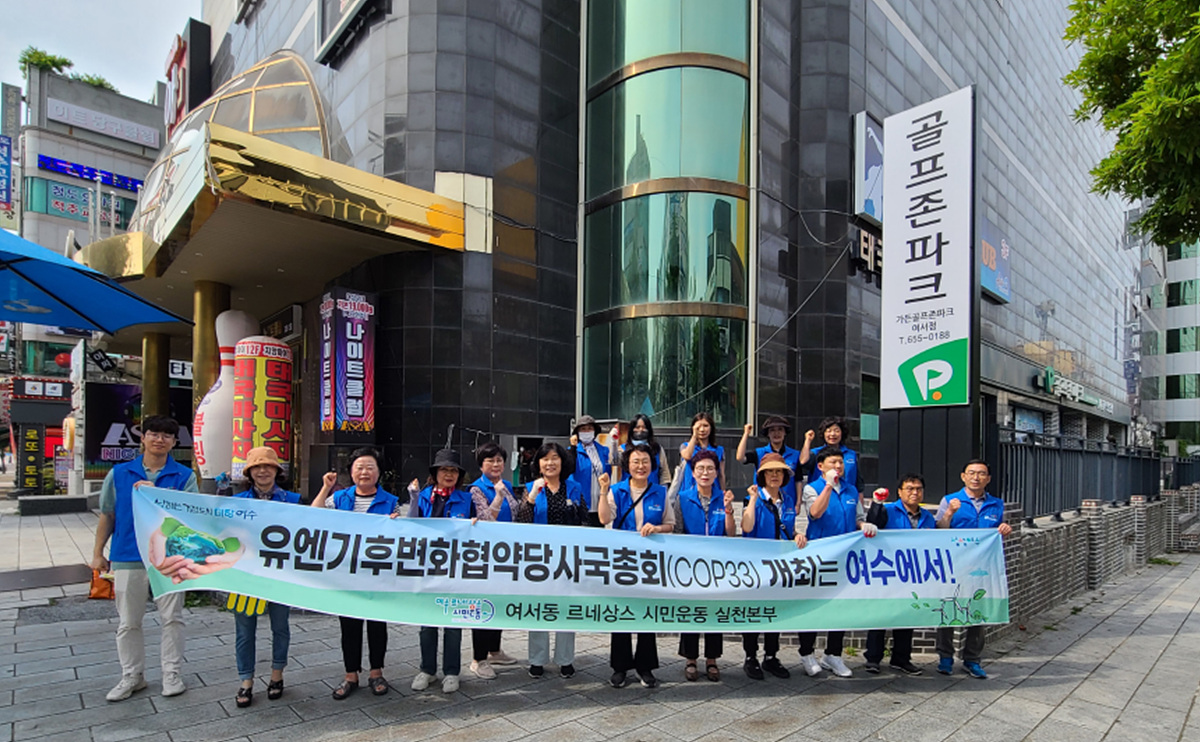 신상숙 여서동 실천본부장은 “이번 캠페인을 통해 많은 분들이 COP33 유치에 대해 관심을 가졌으면 한다”며 “더 나아가 시민이 직접 여수의 미래를 만들어갈 수 있도록 노력하겠다”고 밝혔다.
