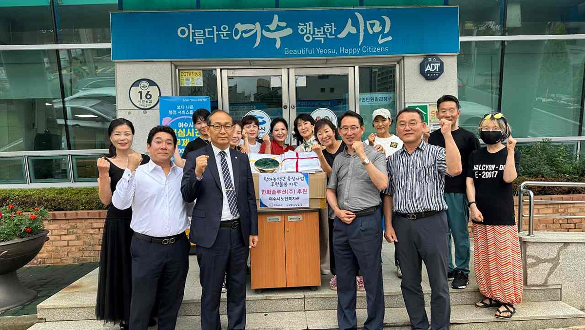 한화솔루션㈜ 여수공장은 지난 21일 망마농악단 육성을 위해 3백만 원 상당의 후원 물품을 시전동주민센터에 전달했다.